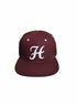 Classic Aesthetic: Features a rich Maroon/Burgundy crown and visor, contrasted by the bold, white embroidered "H" script logo on the front panels. This colorway offers a sophisticated look that pairs well with any team gear or casual outfit.